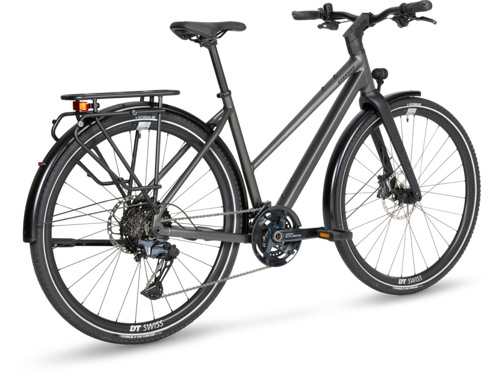 Prémiový trekingový bicykel na každodennú jazdu aj dlhé výlety. STEVENS Caleta 9.1 je vybavený špičkovou sadou Shimano CUES U8000, výkonnými brzdami a kvalitnými kolesami DT Swiss HG 1800.