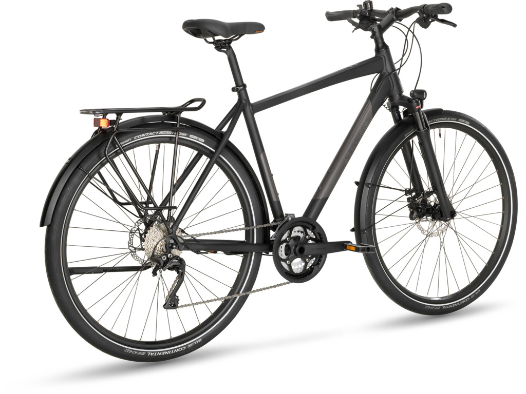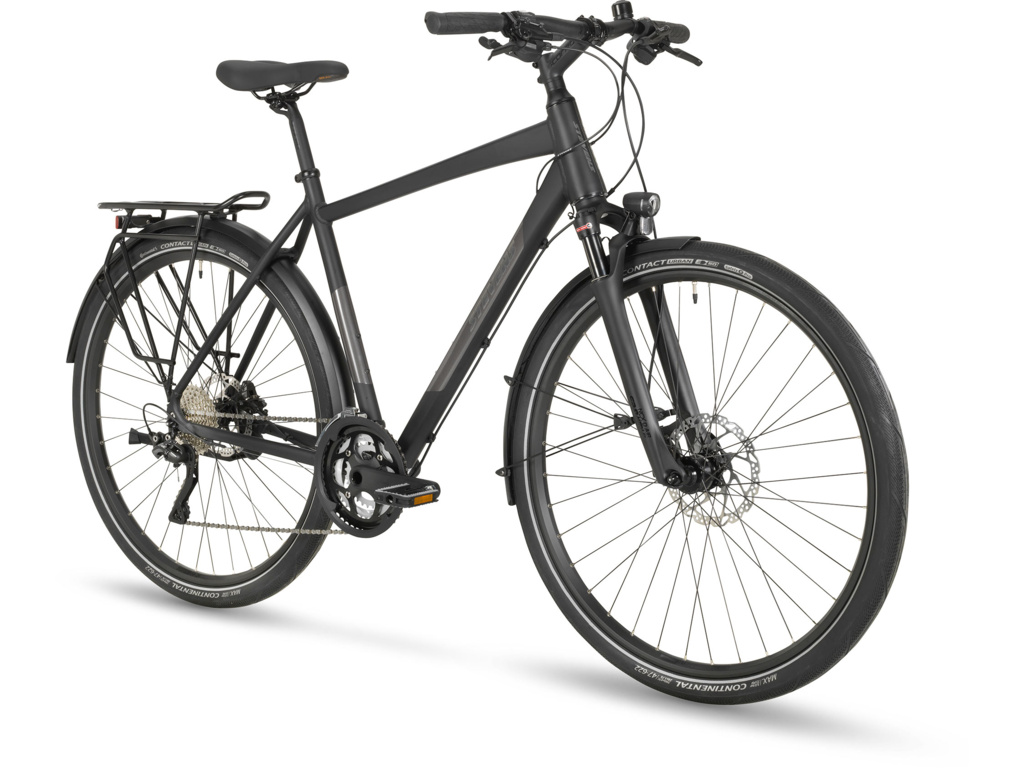 STEVENS Esprit HT je ľahký a pohodlný touringový bicykel s kvalitnou výbavou, vzduchovou vidlicou, 3x10 prevodmi Shimano Deore XT a odolnými 47mm plášťami Continental. Ideálny na dlhé cesty aj mestskú jazdu.