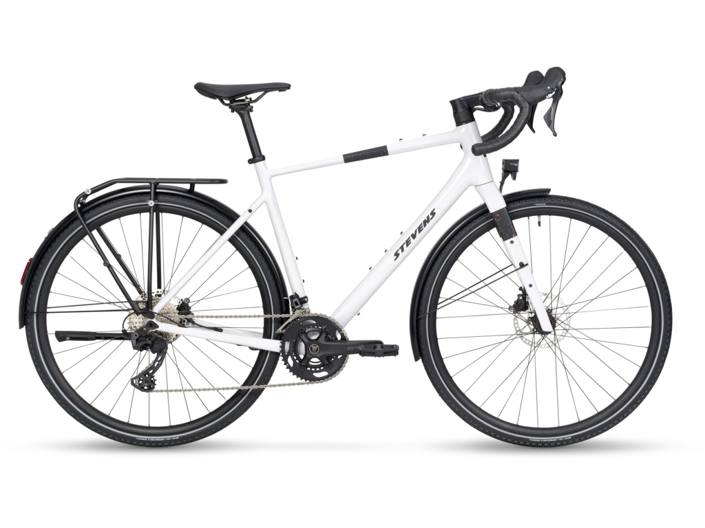STEVENS Gavere Com FEQ v elegantnej farbe Cool Dove je všestranný gravel bicykel určený na každodenné dochádzanie, športové výjazdy aj dlhšie výpravy s brašňami. Ľahký rám z hliníka 6061 s pohodlnou geometriou a tuhý celokarbónová vidlica STEVENS Full Carbon SL poskytujú výbornú kombináciu komfortu a presného riadenia na akomkoľvek povrchu.