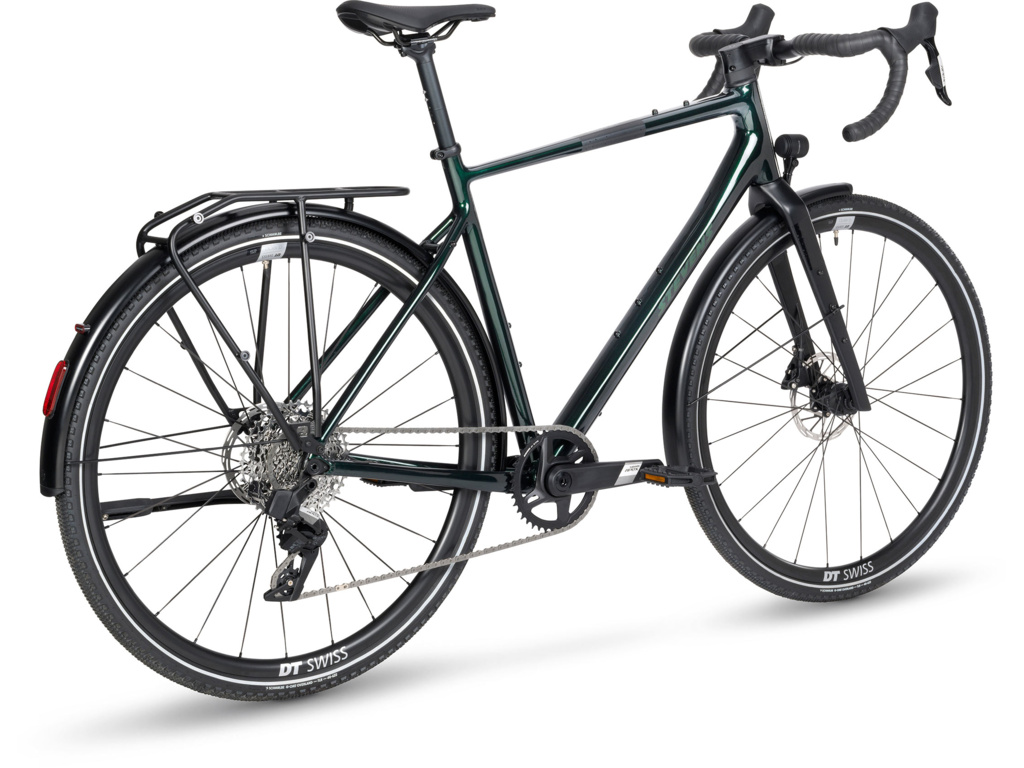 Špičkový gravel bike s kompletnou výbavou na celoročné jazdenie a svižnú jazdu po akomkoľvek povrchu. Ľahký hliníkový rám s karbónovou vidlicou, elektronické radenie SRAM Apex AXS 1×12 a výbava FEQ s osvetlením Supernova, blatníkmi a nosičom.