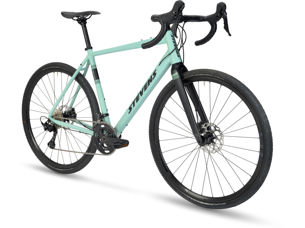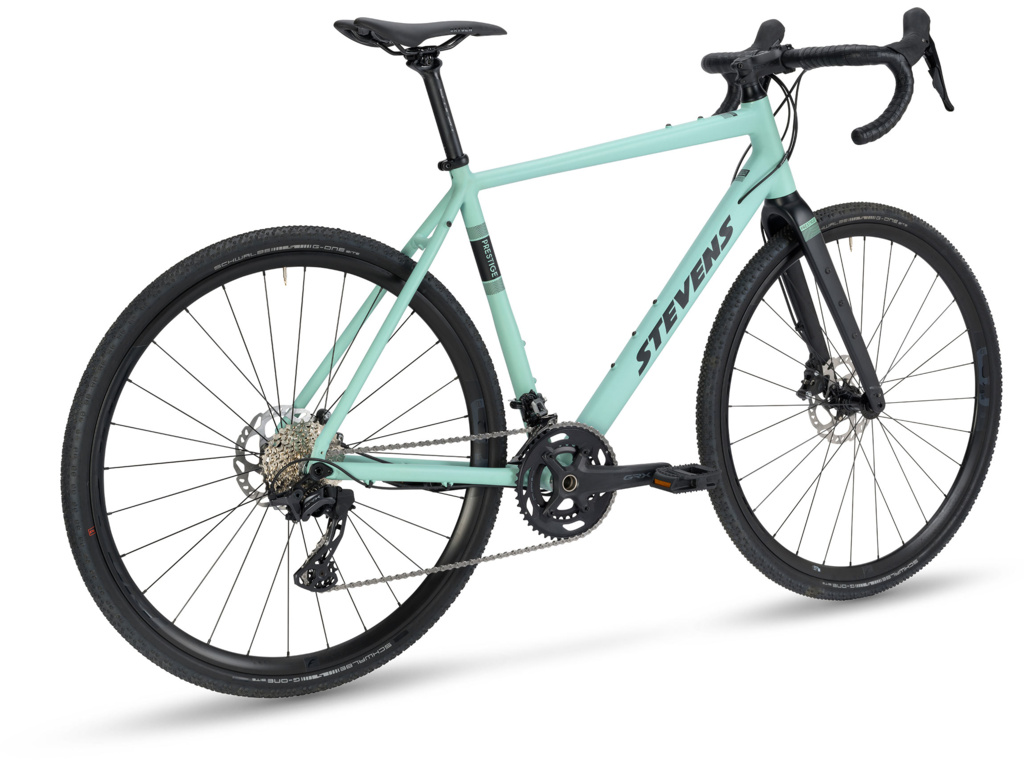 STEVENS Prestige Sage Green – gravel bike pre dobrodruhov! Ľahký hliníkový rám, spoľahlivý pohon Shimano GRX 2x12 a robustné plášte Schwalbe G-One Bite. Ideálny na bikepacking aj rýchle výlety mimo asfaltu.