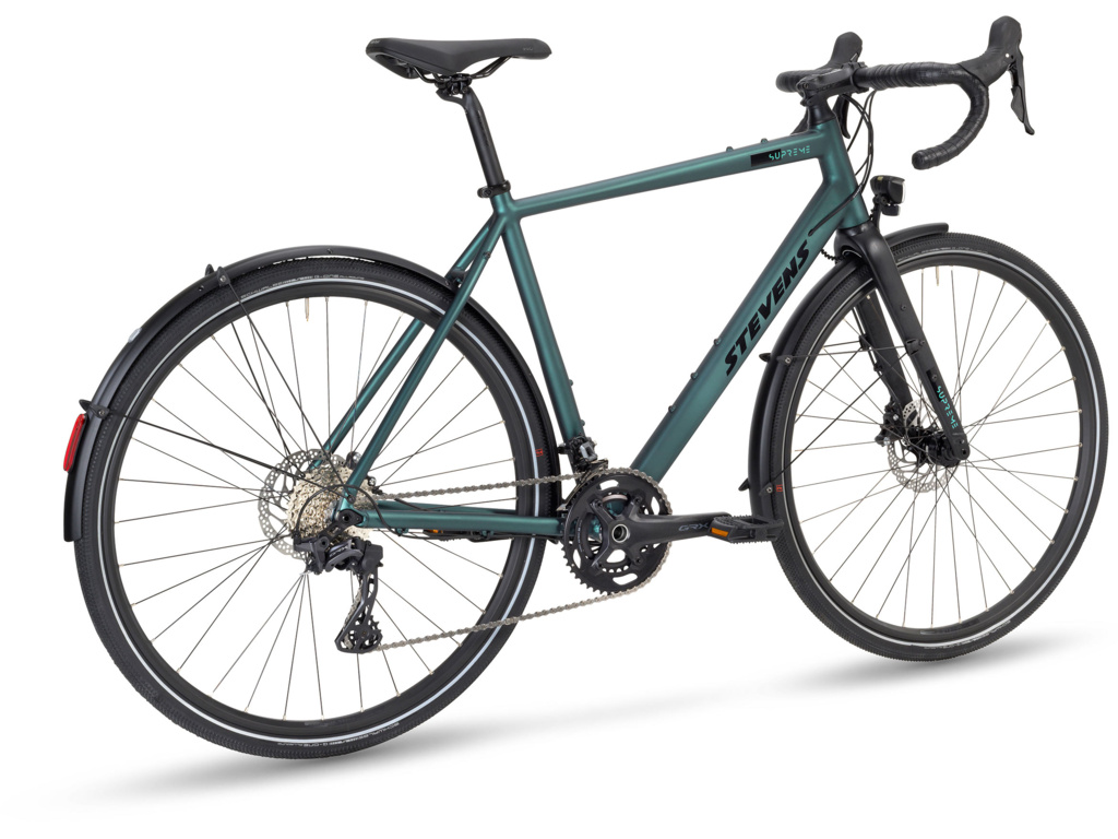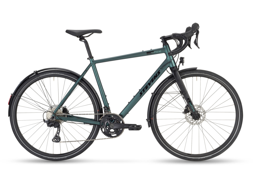 STEVENS Supreme je univerzální gravel bike, který se nezalekne žádného počasí ani povrchu. Díky prodlouženému rozvoru a širokým plášťům Schwalbe G-One Allround (40 mm) nabízí výbornou stabilitu, komfort a trakci i na šotolině nebo mokré cyklostezce. Hliníkový rám a lehká vidlice STEVENS S-Lite přispívají k celkové hmotnosti pouhých 12,1 kg a zároveň poskytují dostatečnou tuhost pro svižnou a efektivní jízdu.
