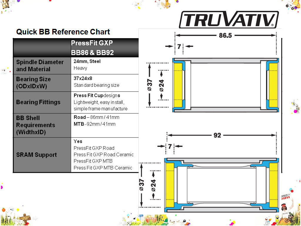 Lisovacie stredové zloženie SRAM (Road) Pressfit GXP, pre kľuky s GXP osou a rámami so šírkou 86mm.