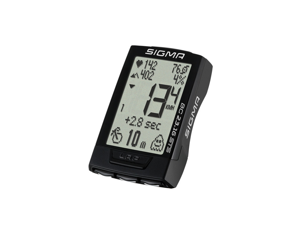 Sigma BC 23.16 je špičkově vybavený bezdrátový cyklocomputer s výškoměrem, měřením srdečního tepu a kadence. Digitálně kódovaný 3-kanálový přenos (dosah až 90 cm), kapacita dat až 500 hodin.