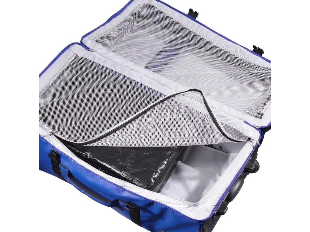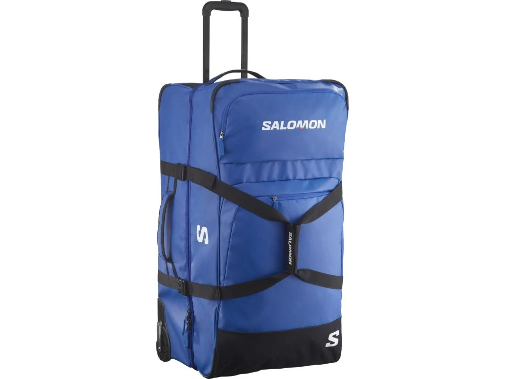 Cestovná odolná taška Salomon Race Trip Container s objemom 130 litrov je navrhnutá s ohľadom na všetky potreby športovcov pri cestovaní. Taška je vhodná na jazdu vo všetkých terénoch vďaka tichým, otočným inline kolieskam, robustnej jednodielnej konštrukcii dna, hliníkovému držadlu a nepremokavým oddielom. Taška je vybavená samostatným nepremokavým oddielom na topánky alebo mokré oblečenie, deleným vstupným otvorom pre jednoduché balenie a ľahko prístupným puzdrom na notebook.