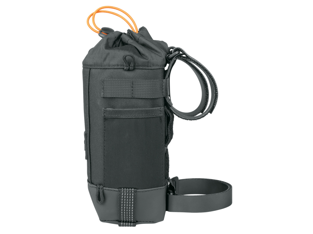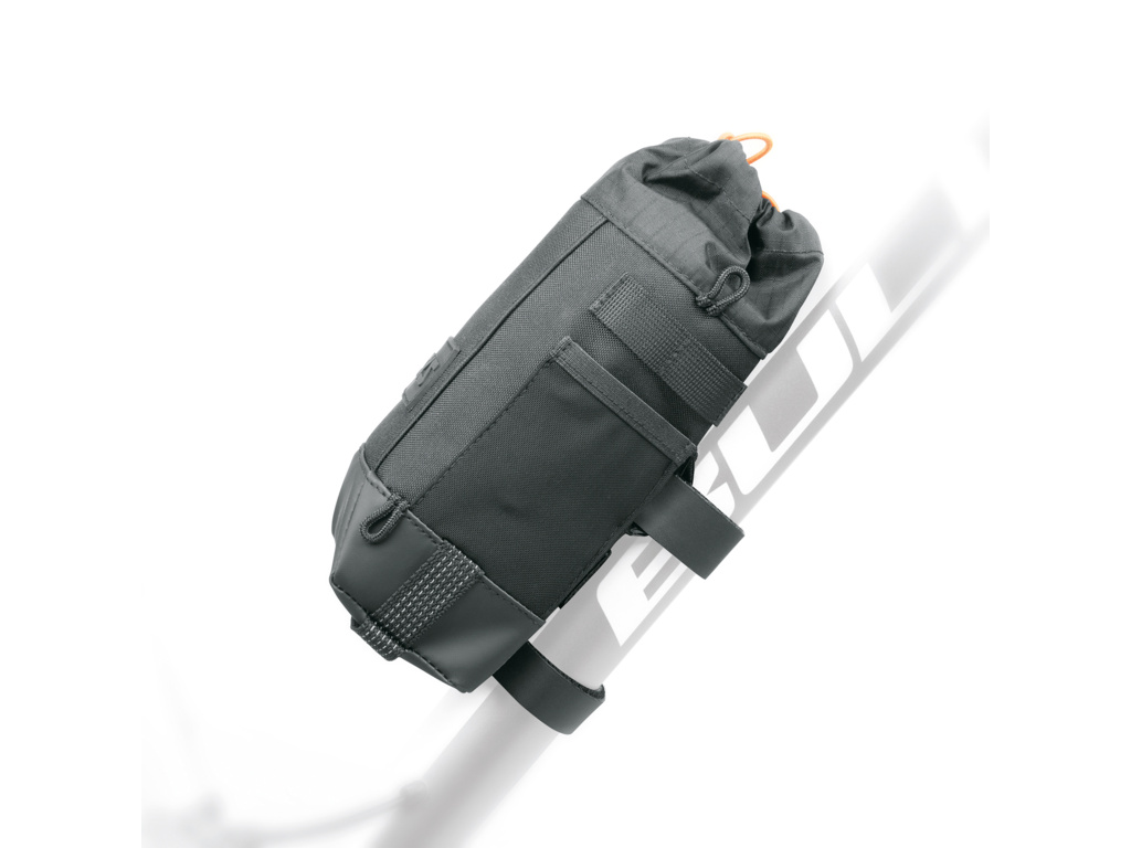 Elastická šnúrka zabezpečuje rýchly prístup k veciam vo vnútri. Taška na bicykel je vyrobená z vodoodpudivého a odolného materiálu a ponúka množstvo praktických funkcií. Medzi ne patria pútka na pripevnenie karabín, reflexné prvky, odtokový otvor vo vystuženej základni a ramenný popruh pre pohodlné prenášanie.