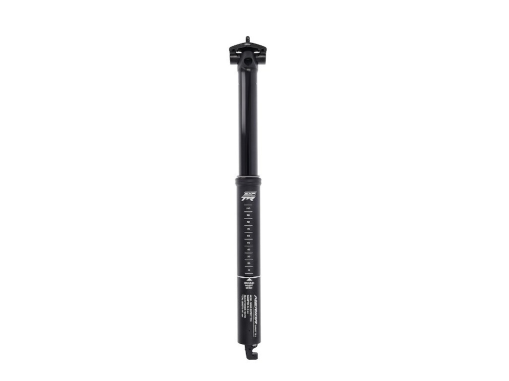 Teleskopická sedlovka Merida s vnitřním vedením bovdenu s ovládací páčkou na řidítkach. Průměr sedlovky 34,9 mm dostupný ve třech délkách.