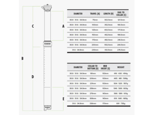 Zdvih: 75mm, 100mm, 125mm, 150mm, 170mm, 200mm, 230mm (31,6mm a 34,9mm)