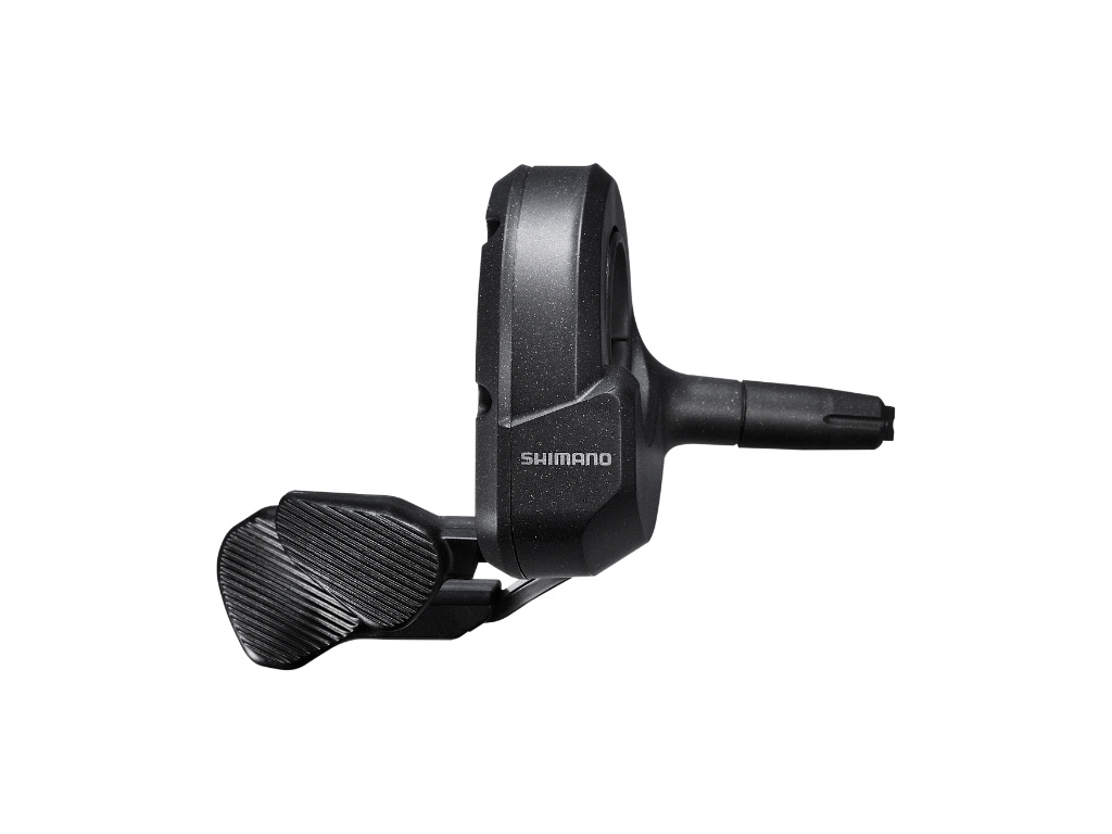 Ľavá spínacia jednotka SW-E8000-L s radiacou pákou v prevedení SHIMANO FIREBOLT ponúka citlivé aretované radenie pre systémy podpory výkonu SHIMANO STEPS. Prevedenie FIREBOLT zaisťuje ergonomickú polohu spínača pri jazde na elektrickom horskom bicykli.