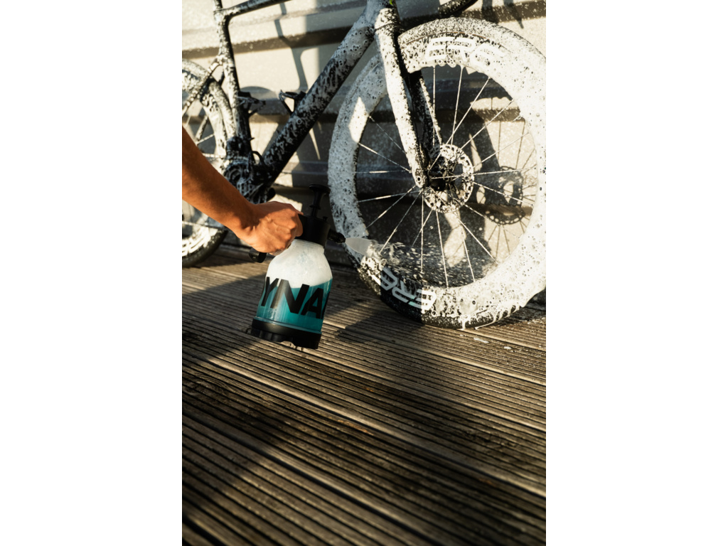 Stačí naplniť nádobu vodou a pridať čistiaci prostriedok Bio Filth Fighter (neriedený) alebo zmes Badass Bubbles s vodou a v priebehu chvíľky máš k dispozícii hustú penu na dokonalé umytie bicykla. Vďaka objemu 1,5 litra dokážeš napeniť až 10 bicyklov na jedno naplnenie. Ľahká, odolná konštrukcia a jednoduché čistenie robia zo Super Soaperu ideálneho pomocníka na každodennú starostlivosť o bicykel.