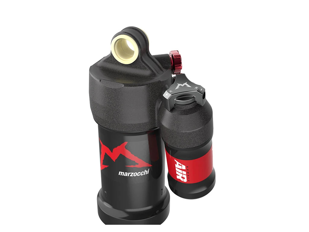Vzduchový tlumič Marzocchi Bomber Air poskytuje díky asymetricky osazené nádržce lepší možnosti osazení do různých rámů a snadný přístup k ovládání komprese.