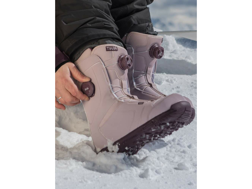 Model Tiara LYT Boa Focus je určený pre snowboardistky, ktoré chcú ľahkosť, spoľahlivosť a bezproblémové ovládanie. Vďaka dvojzónovému systému šnurovania Dual Boa® Focus si môžeš presne doladiť utiahnutie v hornej aj spodnej časti topánky, čím dosiahneš dokonalé prispôsobenie a istú oporu.