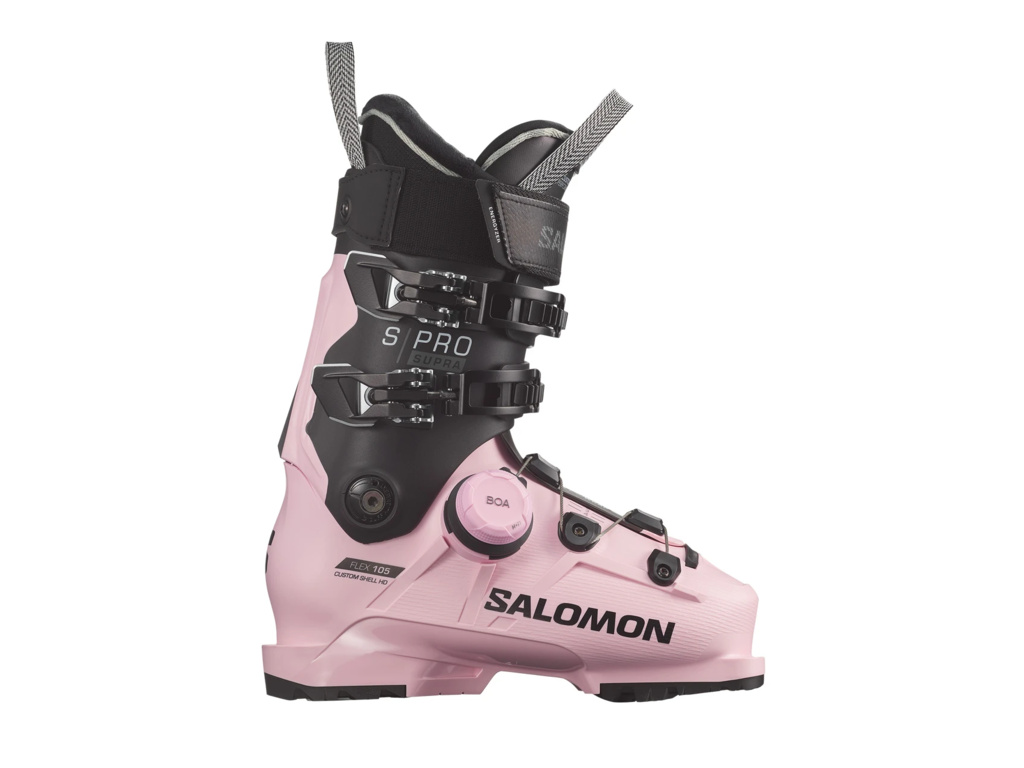 Salomon S/PRO Supra BOA 105 W vo farebnom prevedení Rose Shadow / Black / Beluga nastavujú nový štandard v dámskych zjazdových topánkach. Kombinácia ExoWrap® konštrukcie a BOA® Fit Systému poskytuje rovnomerné utiahnutie a možnosť mikronastavenia počas dňa, takže topánka perfektne obopne chodidlo a zaisťuje komfort aj vysokú presnosť.