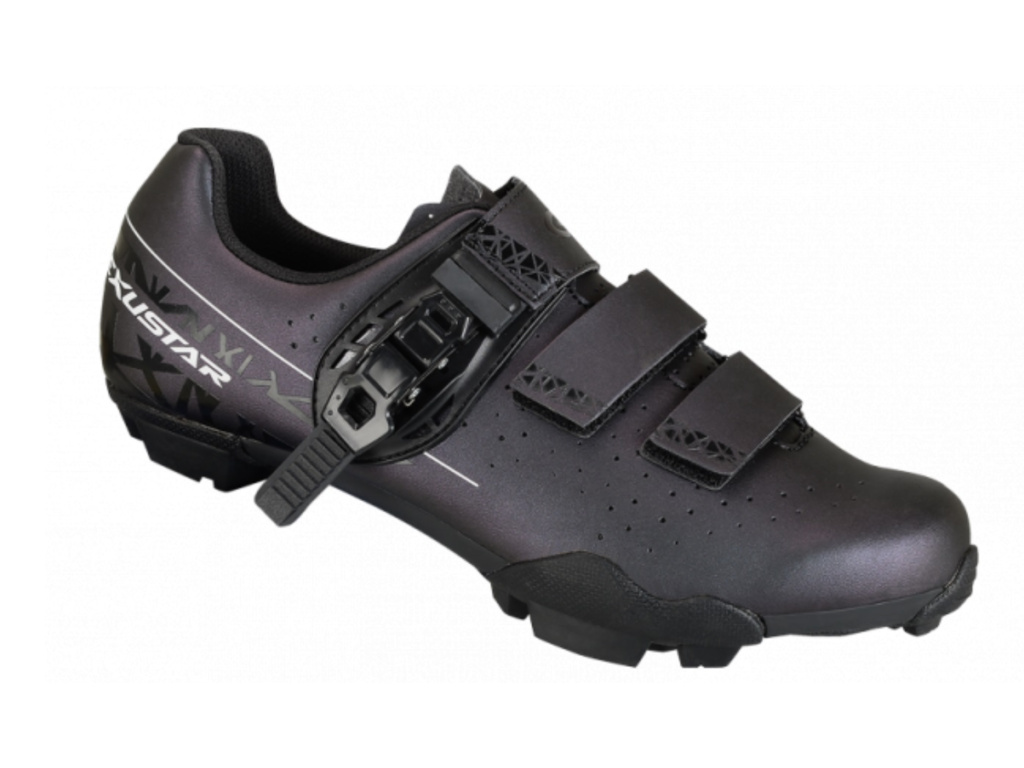 Moderné MTB tretry z priedušnej PU kože. Obľúbené zapínanie na pracku s mikroplyšom je doplnené dvoma suchými zipsami.
