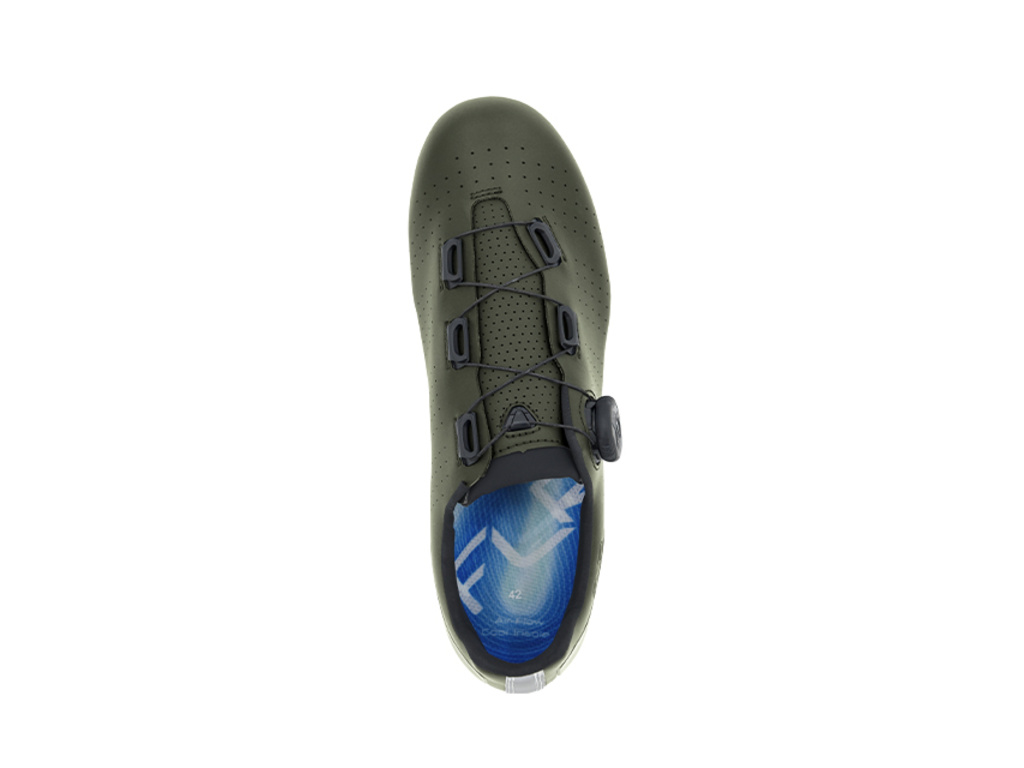 Zvršok je vyrobený z odolného syntetického materiálu s perforáciami pre lepšie odvetranie. Hlavným benefitom je precízny a rýchly utiahovací systém ATOP s otočným kolieskom, ktorý umožňuje rovnomerné stiahnutie bez otlakov – pre maximálne pohodlie počas jazdy. Podrážka je kompatibilná so systémom SPD a ponúka optimálnu tuhosť pre efektívny prenos energie.