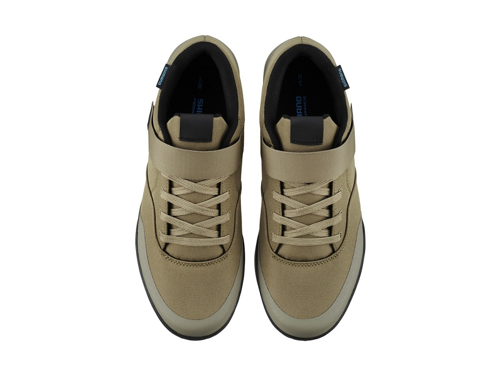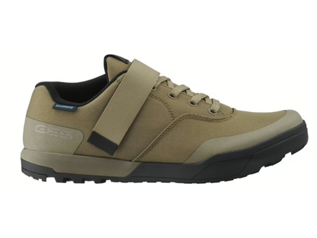 Pánské tretry SHIMANO SH-GE500 kompatibilní s SPD pedály, určené na downhill, tkaničky s přezkou na suchý zip, volný ohyb kotníku, efektivní přenos síly do pedálů.