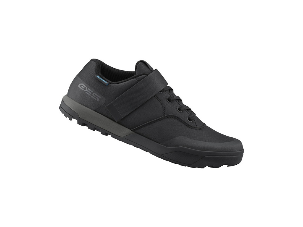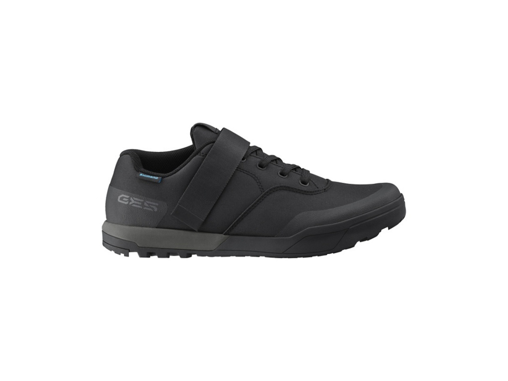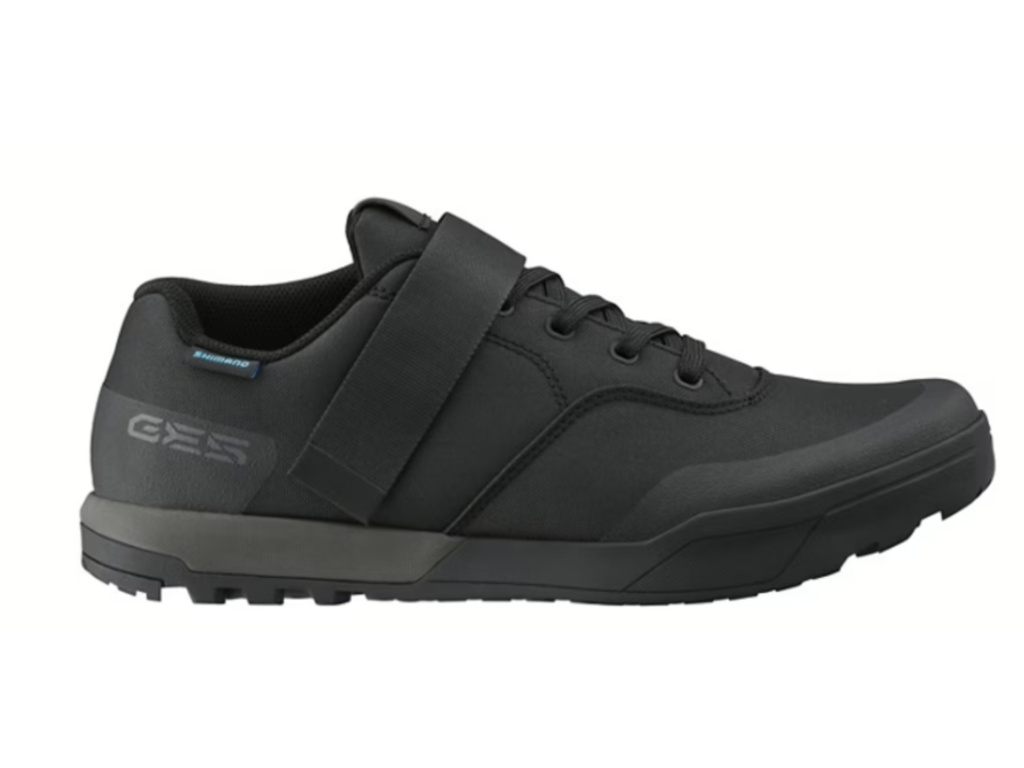 Pánské tretry SHIMANO SH-GE500 kompatibilní s SPD pedály, určené na downhill, tkaničky s přezkou na suchý zip, volný ohyb kotníku, efektivní přenos síly do pedálů.