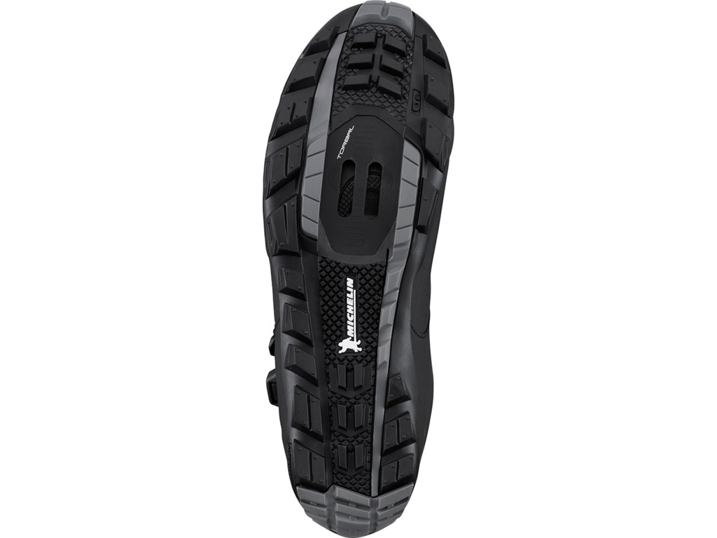 SHIMANO SH-ME702Ml je odolná enduro obuv s vysokým stupňom ochrany chodidla. Vďaka neoprénovému golieru sa do tretry nedostanú nečistoty ani kamienky, takže sú vhodné na agresívnu jazdu v náročnom teréne. Nová podrážka MICHELIN poskytuje modelu vynikajúcu trakciu a stabilitu. Systém rýchleho šnurovania a reverzná pracka bezpečne upevňujú nohu pre dokonalú kontrolu jazdy. Index tuhosti: 8Brzdy: SPDTechnológia: volumeDoporučené pedále: PD-M9120Zapínanie: systém rýchleho šnurovania s reverznou prackouMateriál zvršku: syntetická kožaPodrážka: guma