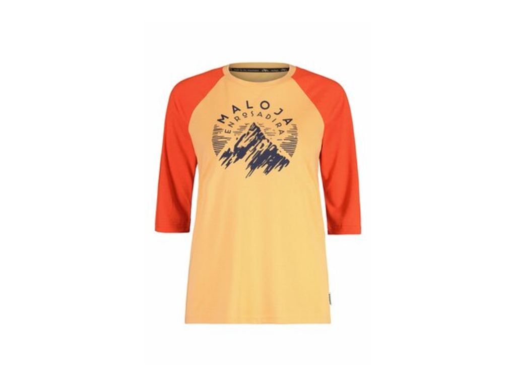 Regular střih poskytuje pohodlí bez omezení pohybu a snadno se kombinuje s dalšími kousky oblečení. Dvoubarevné raglánové provedení doplňuje výrazný potisk Enrosadira na hrudi, inspirovaný typickým zbarvením dolomitských hor. Celkový charakter trička odpovídá filozofii značky Maloja, která klade důraz na udržitelné materiály, funkčnost a osobitý styl.