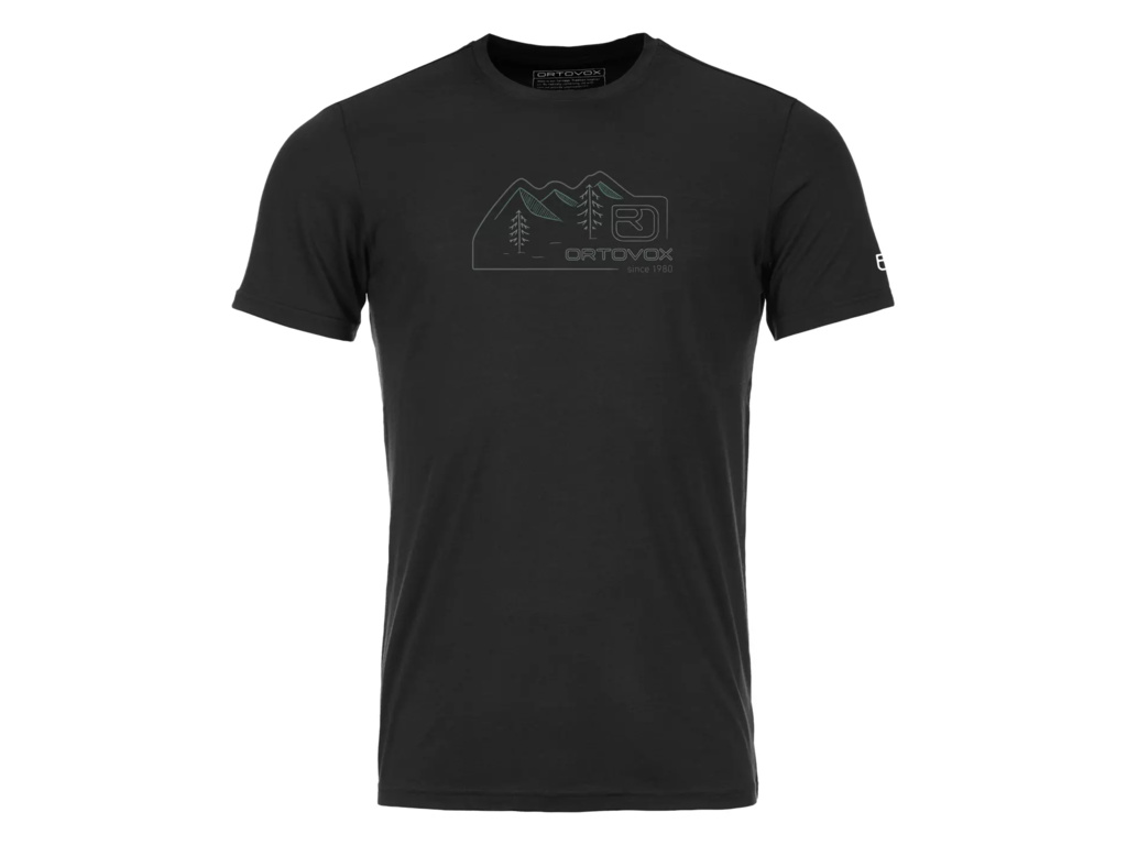 Stylový potisk loga ORTOVOX s horskou tématikou na hrudi.