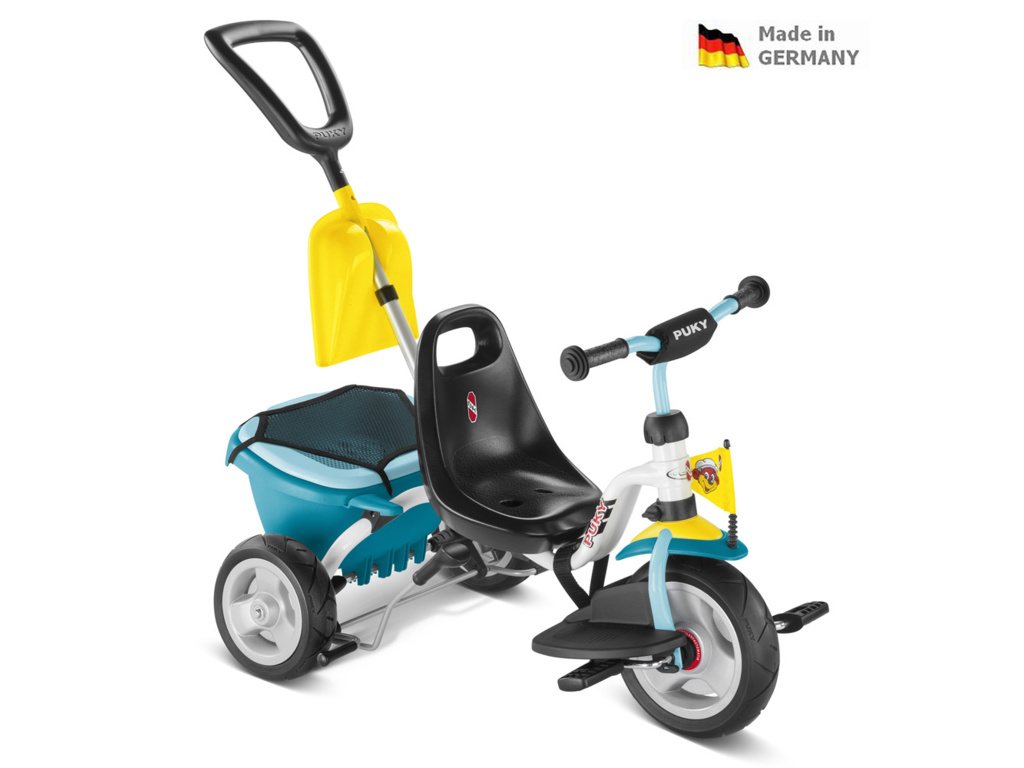 Pre deti vo veku 2 až 4 rokov je zaujímavé všetko vyskúšať. Trojkolky PUKY trénujú detskú motoriku a koordináciu rúk a nôh. Keďže spoločnosť PUKY pri vývoji hračiek nemyslí len na deti, ale aj na ich rodičov, všetky trojkolky majú odnímateľnú a výškovo nastaviteľnú rukoväť pre rodičov. Vaše deti si môžu užívať voľnosť a vy máte všetko bezpečne pod kontrolou. VHODNÉ PRE DETI OD 2 ROKOV.Nízko položené ťažisko pre väčšiu bezpečnosť vašich detíNastaviteľné sedadlo pre pohodlné sedenie vášho dieťaťaVýškovo nastaviteľná a odnímateľná vodiaca tyč pre doprovodMožnosť prepnutia na voľnobehMožnosť uzamknutia riadidielKvalitné pneumatiky plnené vzduchom, L225/55 vpredu, L180/50 vzaduRučná brzdaBezpečnostné koncovky na riadidláchPolstrovanie riadidielSklopná hlaveňKvalitný lakDodávané s naberačkou, vlajkou, opierkou na nohy Dĺžka: 77 cmŠírka: 48 cmHmotnosť: 7,6 kgNosnosť: 25 kgTex