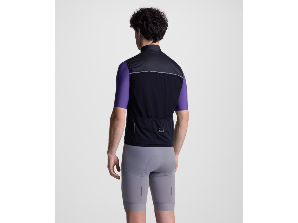 Ľahká vetruodolná vesta SANTINI RTR Wind so slim strihom, reflexnými prvkami a tromi vreckami na chrbte je ideálnou voľbou na chladné rána, zjazdy alebo jazdu v premenlivom počasí – ľahko zbaliteľná a vždy pripravená.