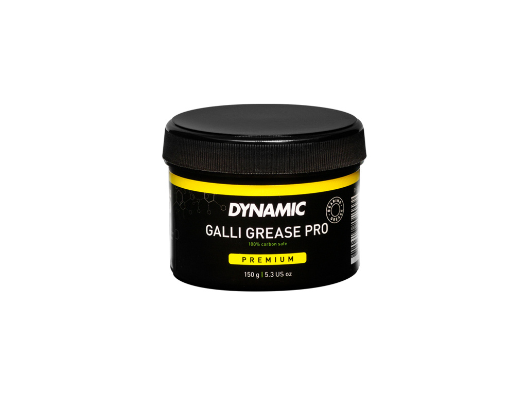 Toto prémiové mazivo zabraňuje korózii, znižuje opotrebenie a chráni ložiská pred soľou aj elektrolytmi. Je vodoodpudivé, vhodné do všetkých teplôt a vďaka stabilnej viskozite zabezpečuje dlhú životnosť. Dynamic Galli Grease Pro je ideálne na mazanie ložísk kolies, stredových zložení aj pedálov. Výborne sa hodí aj na náboje, osky, odpruženie a teleskopické sedlovky. Všetky mazivá Dynamic sú 100 % bezpečné pre použitie s karbónom.