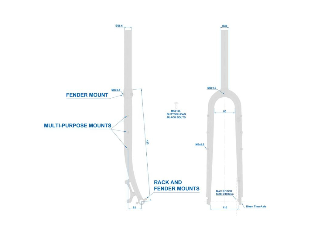 S ohľadom na vašu túžbu jazdiť ďaleko a dlho za akýchkoľvek podmienok a za akýchkoľvek okolností je vidlica Steel Adventure vybavená úchytmi na nosič pre batohy plné výbavy a úchytom na blatník, ktorý vás a váš bicykel ochráni pred špinou. Tri viacúčelové úchyty na nohách vám poskytnú viac miesta na uloženie nevyhnutností.