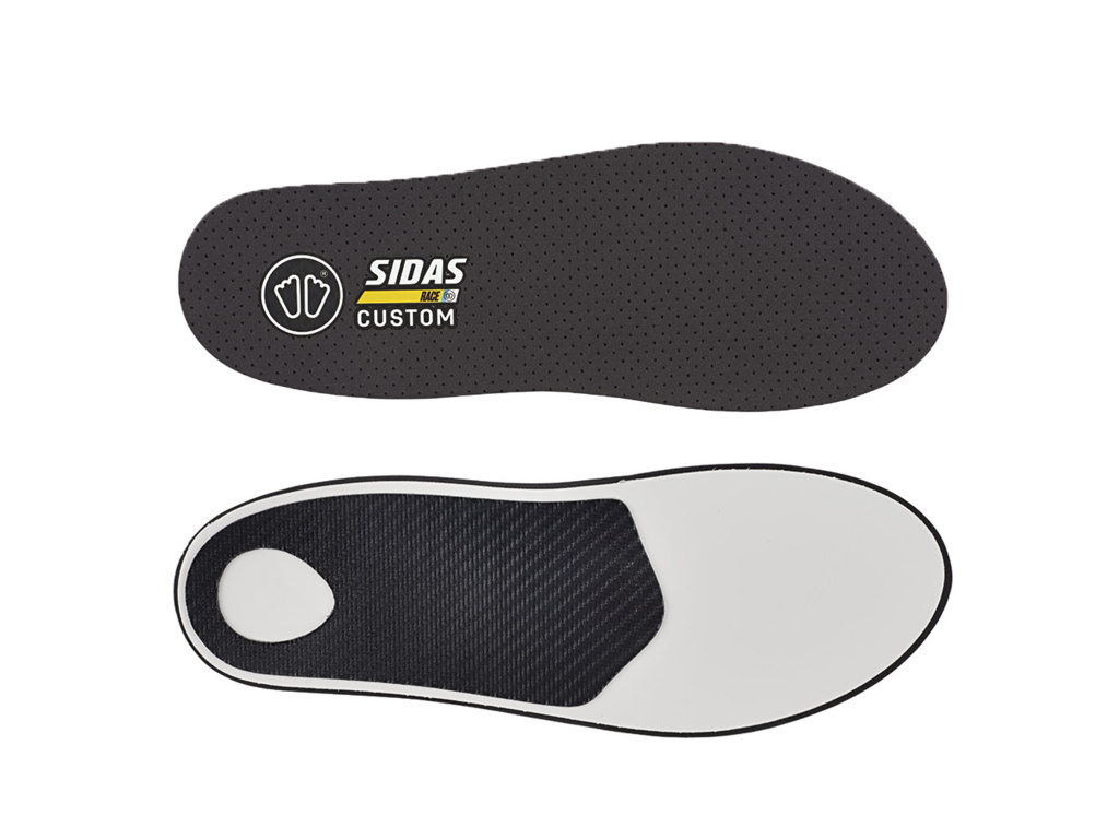 Sidas Custom Race 2 jsou 100% přizpůsobitelné vložky pro závodní sjezdové lyžování, doporučené pro technické disciplíny (obří slalom). Zpevnění střední části chodidla v oblasti podélné klenby z materiálu Podiafiber poskytuje stabilitu a podporu, zatímco základna podiafix nabízí tuhost pro rychlý přenos energie. Lyžaři ocení horní krycí vrstvu AMF pro její tenké provedení, odolnost a antibakteriální vlastnosti. Aby se přizpůsobila malému objemu lyžařských závodních bot, výška této stélky pod patou nepřesahuje 3,4 mm.