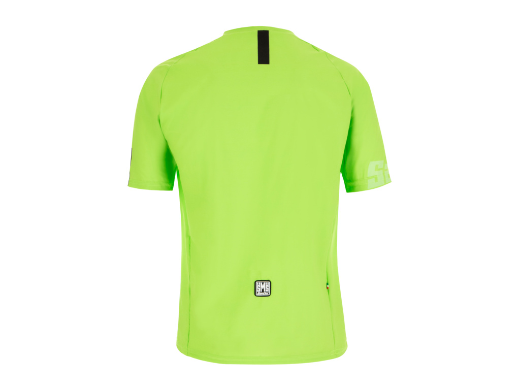 SANTINI MTB Sasso Jersey je dres, ktorý vás nebude obmedzovať v teréne. Je voľný a ľahký s okrúhlym golierom pre väčšie pohodlie a predĺženým chrbtom pre perfektné krytie pod batohom. Model je vyrobený zo špeciálnej látky, ktorá je odolnejšia voči oderu spôsobenému drsným jazdením alebo odrením batohom. Nielen praktická, ale aj štýlová záležitosť.