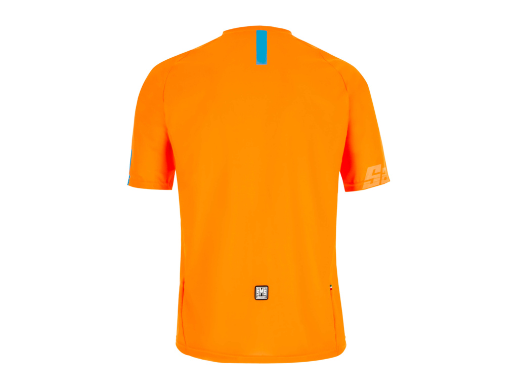SANTINI MTB Sasso Jersey je dres, ktorý vás nebude obmedzovať v teréne. Je voľný a ľahký s okrúhlym golierom pre väčšie pohodlie a predĺženým chrbtom pre perfektné krytie pod batohom. Model je vyrobený zo špeciálnej látky, ktorá je odolnejšia voči oderu spôsobenému drsným jazdením alebo odrením batohom. Nielen praktická, ale aj štýlová záležitosť.