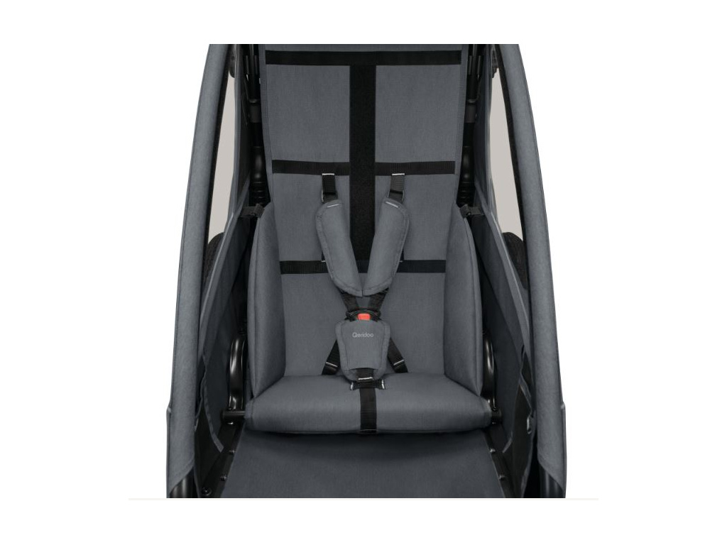 Jednomiestny odpružený detský vozík za bicykel Qeridoo Qupa1. Ponúka komfortné sedadlo s adaptívnym 5-bodovým pásom a kočíkové koliesko Multiwheel s funkciou aretácie. Odporúčame pre deti s maximálnou výškou 116,5 cm.