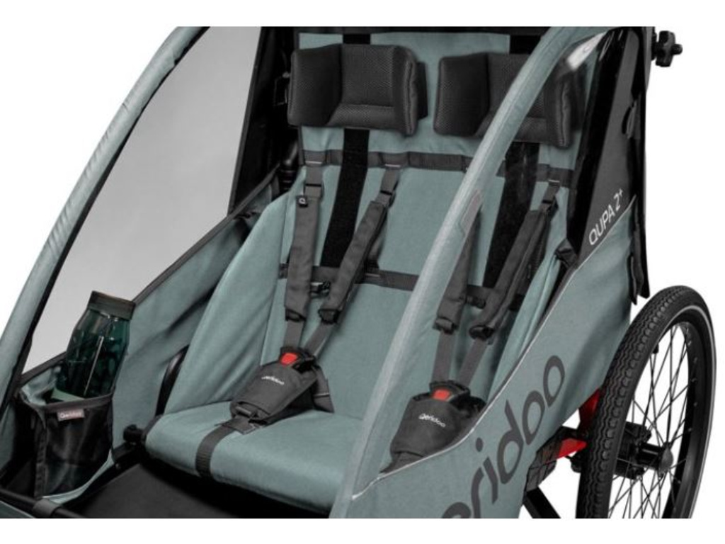 Jednomiestny odpružený detský vozík za bicykel Qeridoo Qupa1. Ponúka komfortné sedadlo s adaptívnym 5-bodovým pásom a kočíkové koliesko Multiwheel s funkciou aretácie. Odporúčame pre deti s maximálnou výškou 116,5 cm.