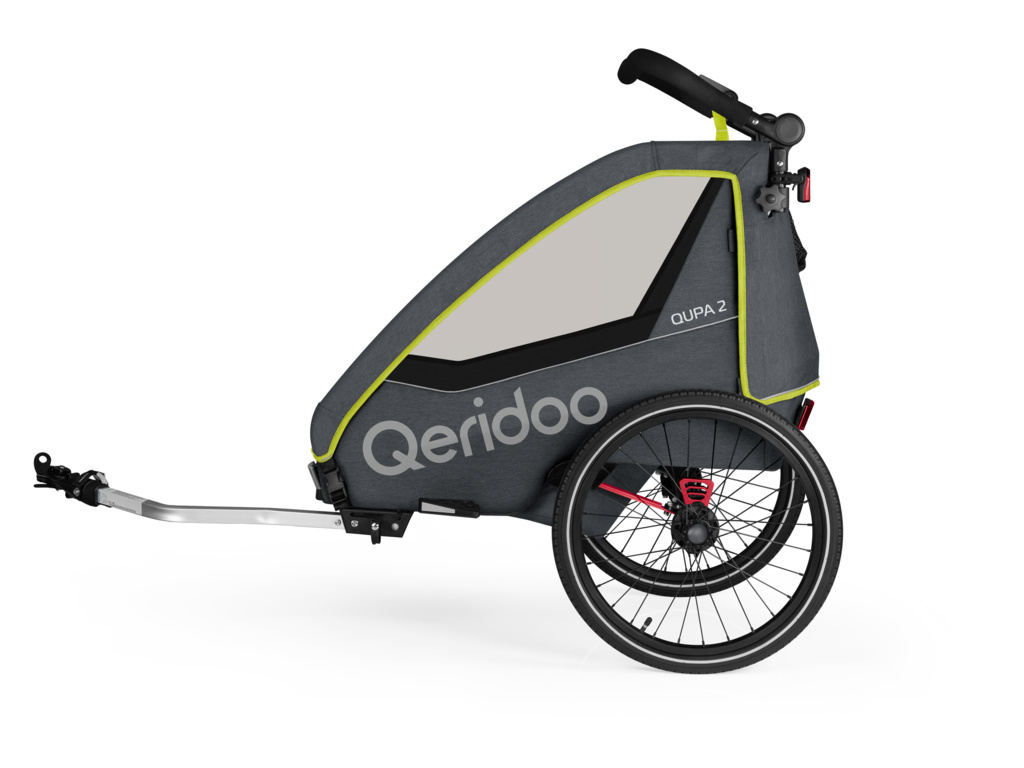 Dvojmiestny odpružený detský vozík za bicykel Qeridoo Qupa 2. Ponúka komfortné sedadlá s adaptívnym 5-bodovým pásom a kočíkové koliesko Multiwheel s funkciou aretácie. Odporúčame pre deti s maximálnou výškou 116,5 cm.