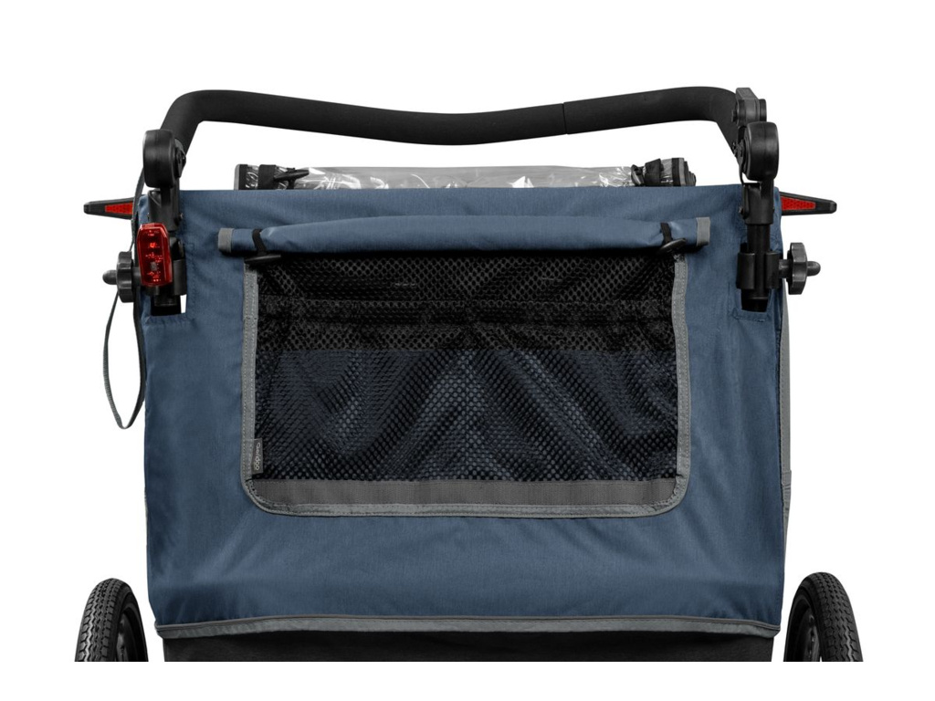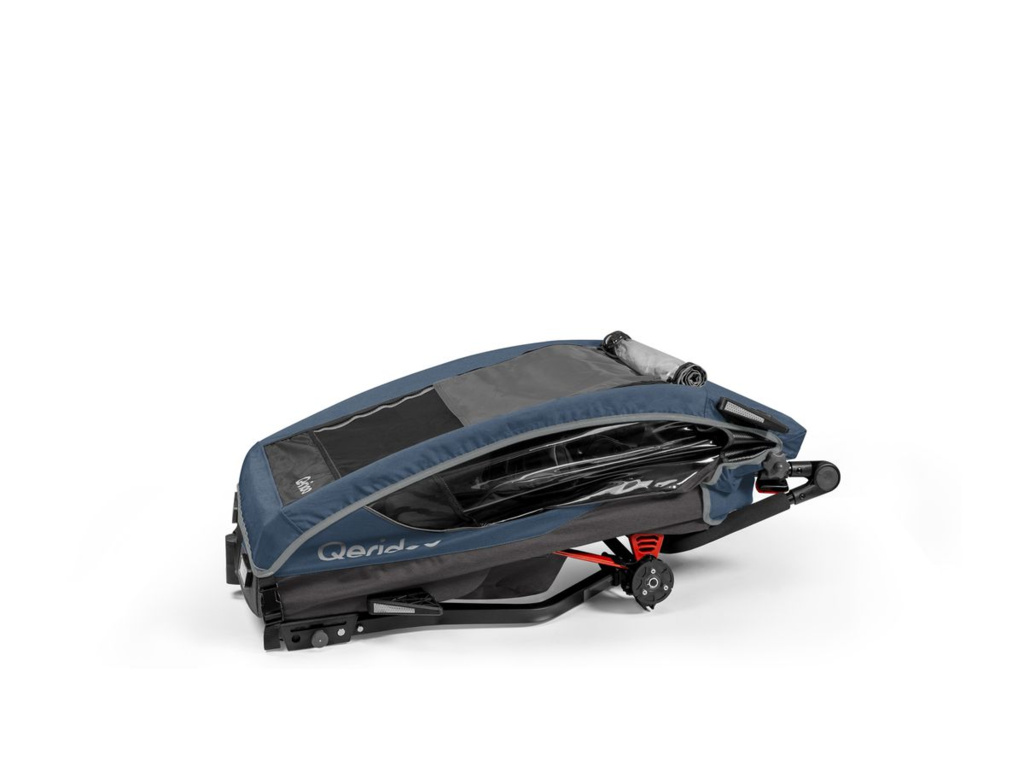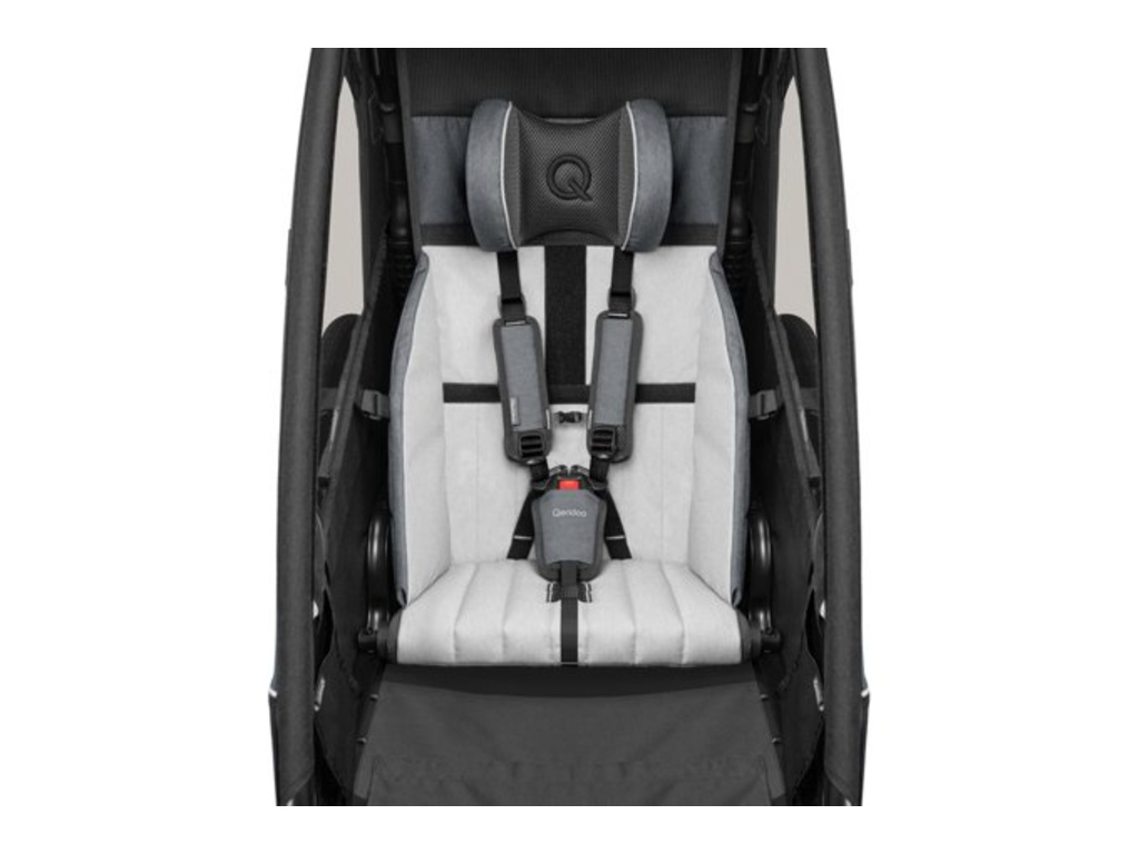 Jednomiestny odpružený detský vozík za bicykel Qeridoo Sportrex 1. Komfortné sedadlo s adaptívnym 5-bodovým pásom.