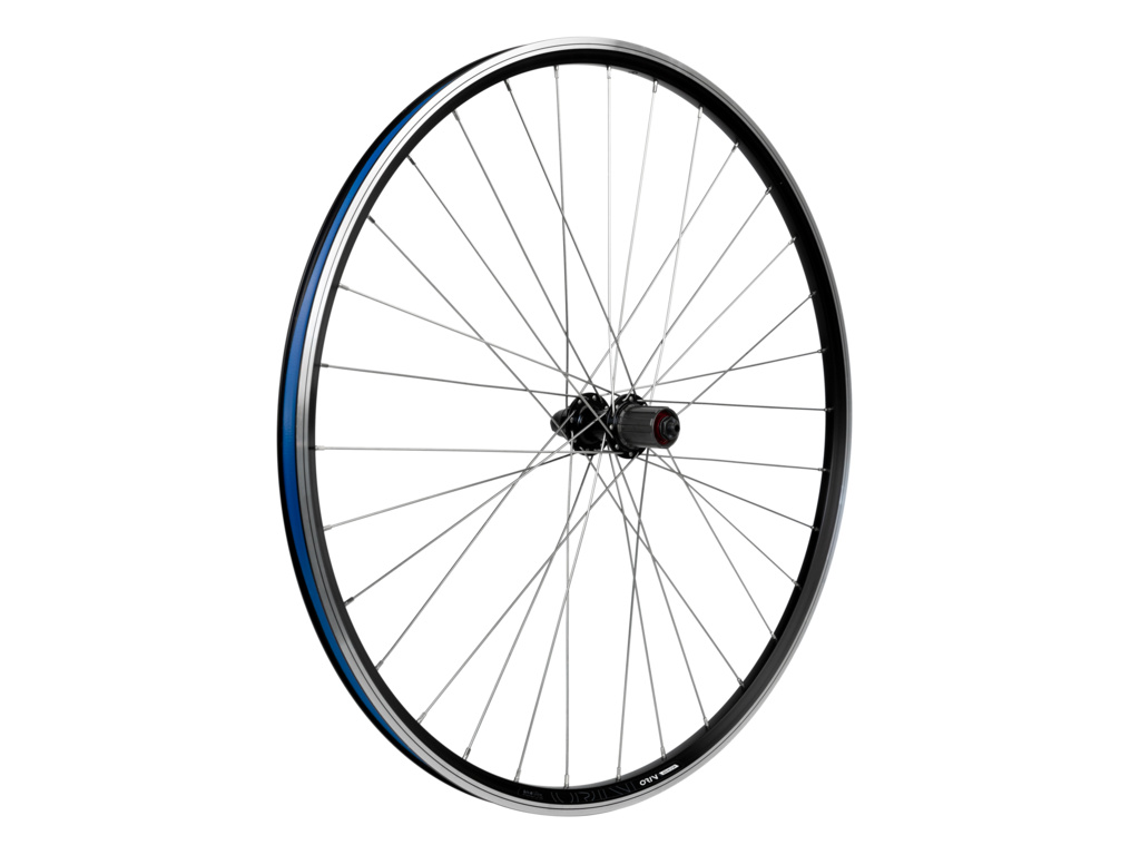 Zadné zapletené koleso pre crossové, trekové a 29" MTB bicykle s ráfikovými brzdami. Orech pre štandardné Shimano/Sram kazety.