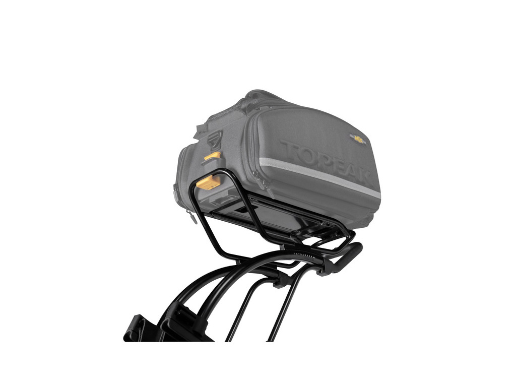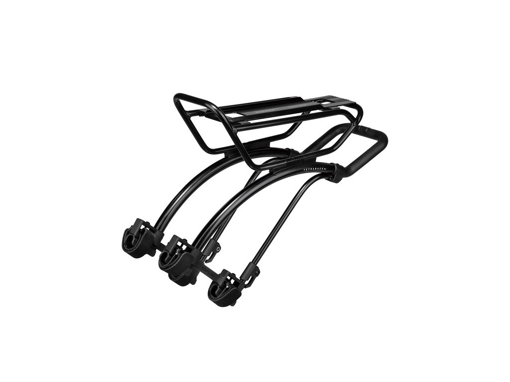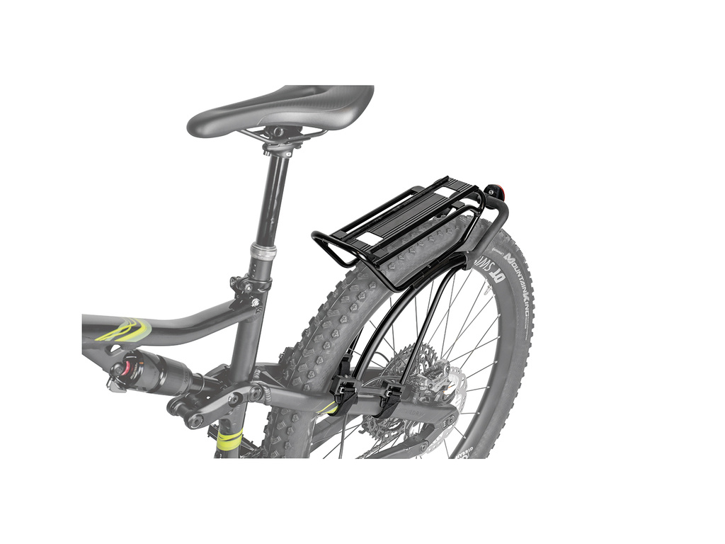 Perfektný rýchloupínací zadný nosič, určený uchytenie na zadnú stavbu rámu celoodpružených MTB, e-bikov alebo hardtailových bicyklov, ktoré nemajú na zadnej stavbe rámu montážne otvory na klasický nosič. Nosič je výnimočný tým, že má polohovateľnú vrchnú časť - ložnú plochu a tým sa vie prispôsobiť rôznym veľkostiam a geometriám rámov.