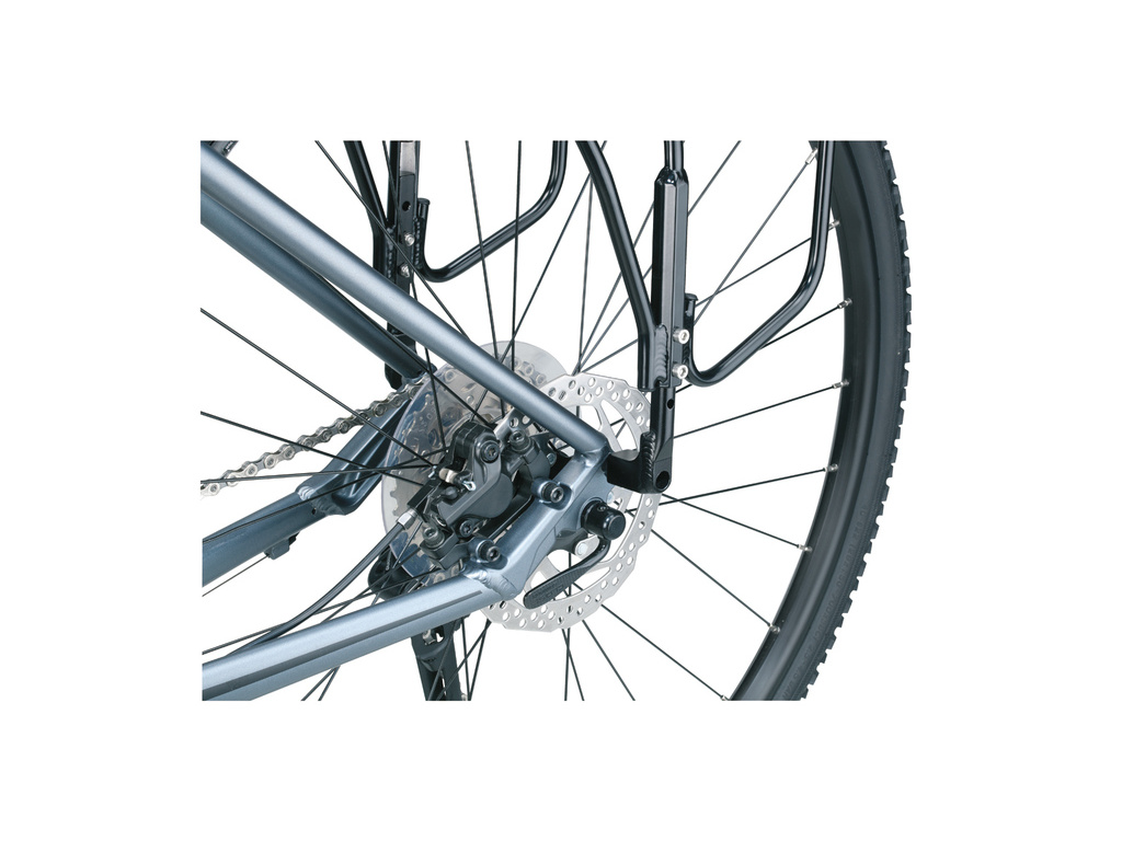 Univerzálny zadný nosič s nastaviteľnými koncovkami pre 24" - 29" MTB bicykle a 28" cestovné bicykle s diskovými brzdami