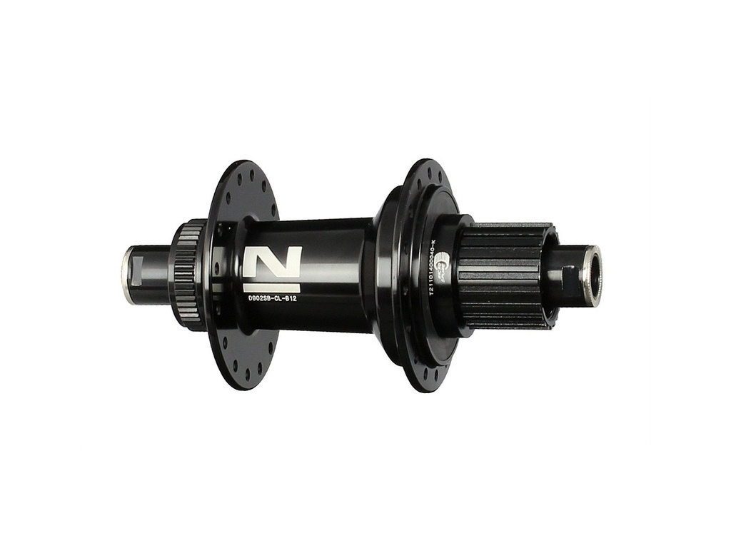 Enduro diskový náboj Novatec s ořechem Shimano MicroSpline 12s na 12mm Boost osu a uchycením kotouče CenterLock.