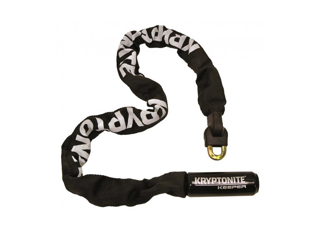 Reťazový zámok Kryptonite Keeper 785 s 7 mm článkami z mangánovej ocele, dĺžkou 85 cm a ochranou rámu vďaka nylonovému povrchu. Úroveň zabezpečenia 5/10.