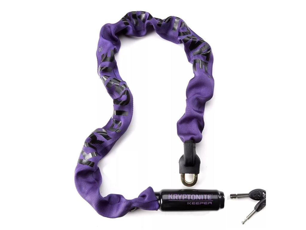 Reťazový zámok Kryptonite Keeper 785 s 85 cm dĺžkou, 7 mm článkami z mangánovej ocele a ochranou rámu, dostupný v 4 farbách. Úroveň ochrany 5/10.