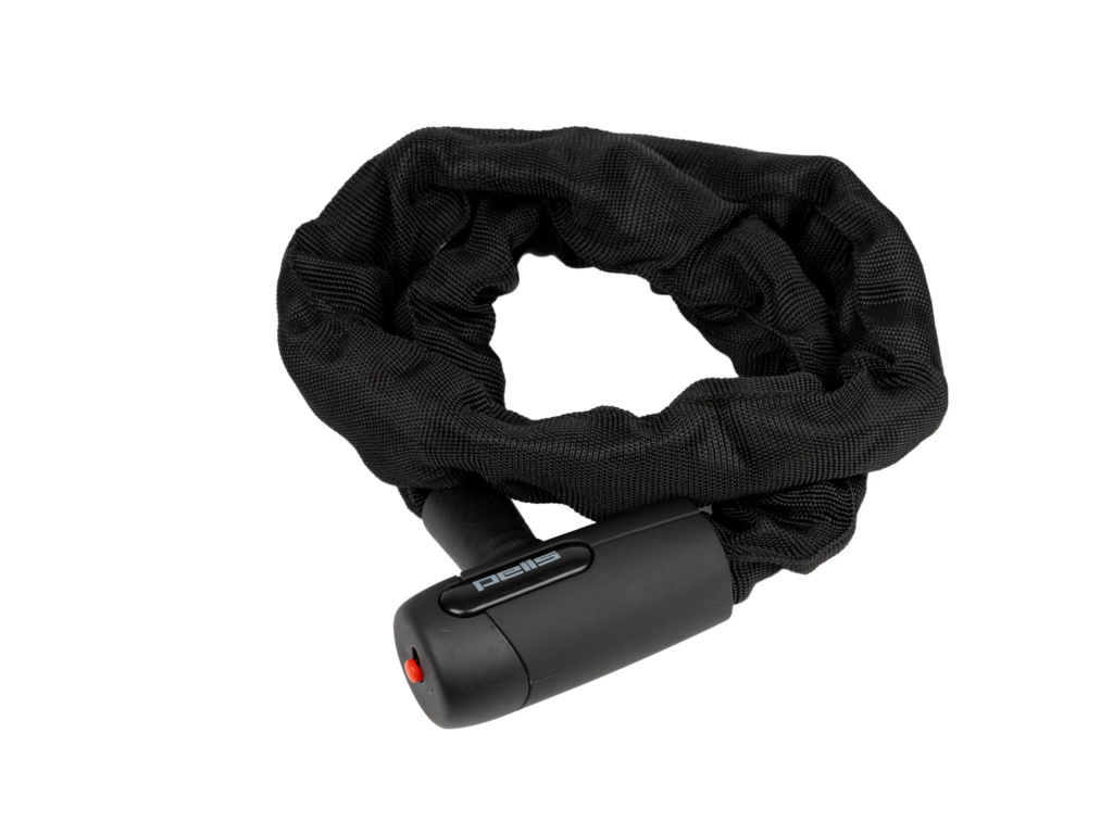 Spolehlivý a odolný řetězový zámek na klíč. Měkká tkanina na povrchu chrání lak kola před poškozením. Řetěz o celkové délce 1000 mm se dá jednoduše smotat do menšího rozměru.