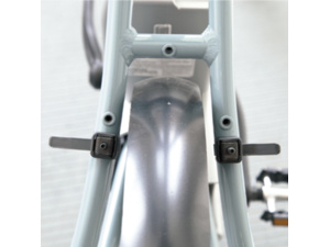 Zámok na vidlicu zadného kolesa, oceľová závora s priemerom 8,5 mm. Závora a telo zámku sú vyrobené zo špeciálnej tvrdenej ocele.