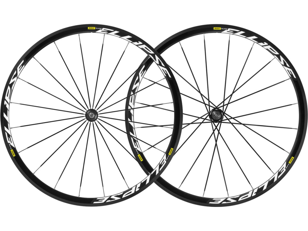 Opletené kolesá MAVIC Ellipse. Spoľahlivosť a vynikajúce aerodynamické vlastnosti na preteky aj každodenný tréning.Jednoduchá a rýchla výmena pneumatík a prevodov. Zadný náboj "flip-flop" umožňuje voľbu prevodového stupňa v závislosti od trate. Dusiace ráfiky na rýchlu výmenu pneumatík.Veľkosť: 700cRáfiky:Vnútorná šírka: 15 mmVŕtanie: tradičnéVeľkosť plášťa: 622x15CHVýška: 30 mmPriemer otvoru na ventil: 6,5 mmMateriál: S6000 hliníkPlášte: SUPHuby:Predné a zadné telo: hliníkMateriál nápravy: oceľPevný pastorekNastaviteľné zapuzdrené ložiská (QRM )Vodiče:Niple: oceľ, ABMateriál: oceľTvar: Priamo ťahané, plochéNipple: meď ABTangle: vpredu radiálne, vzadu 2x skríženéPočet: 20 vpredu a vzaduKompatibilita:Zadná náprava: montáž len na maticu (súčasťou balenia), závit M10x1Predná náprava: montáž len na maticu (súčasťou balenia), závit M10x1Prevody: len pevný pastorky, vymeniteľný zadný náboj (s jedným pa