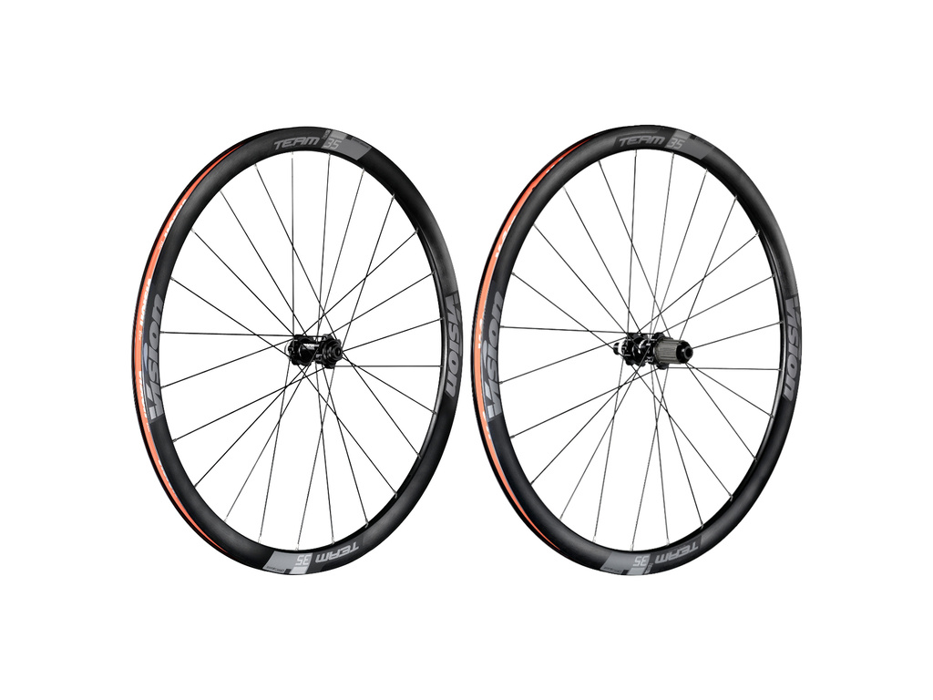 Zapletená kola pro silniční využití Vision TEAM 35 ve verzi pro discové brzdy.